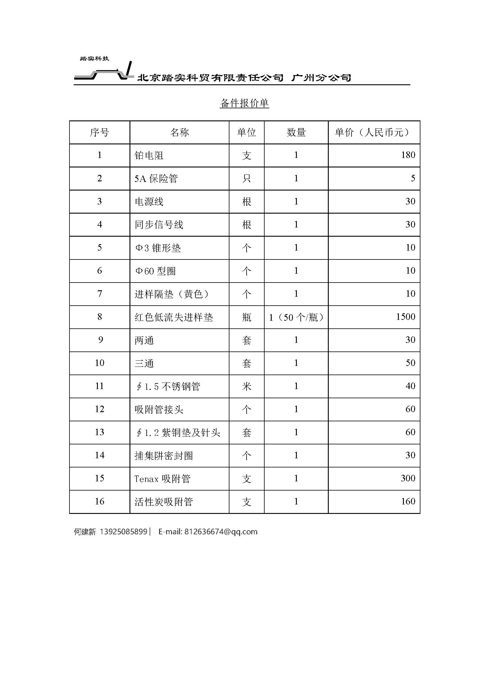 序號 | 名稱 | 單位 | 數量 | 單價(人民幣元) |